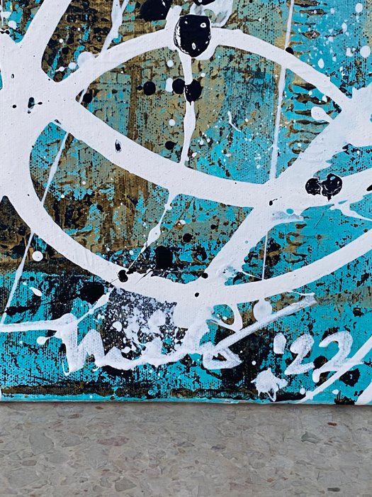 Het schilderij wordt opgerold en verzonden in een stevige kartonnen doos of koker zonder spanraam of frame.