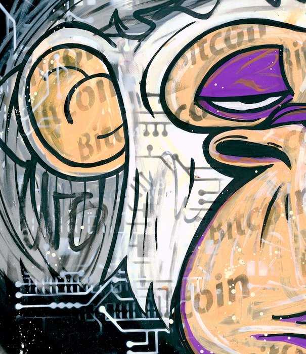 Sleutelwoorden: Bitcoin, Cryptocurrency, Digitaal geld, Geldkunst, Posca, Aerosol, Opkomende artiest