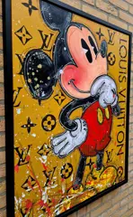 Mickey Thinking about Louis Vuitton.Gold edition in acrylverf op doek in de afmeting van 100x80cm.