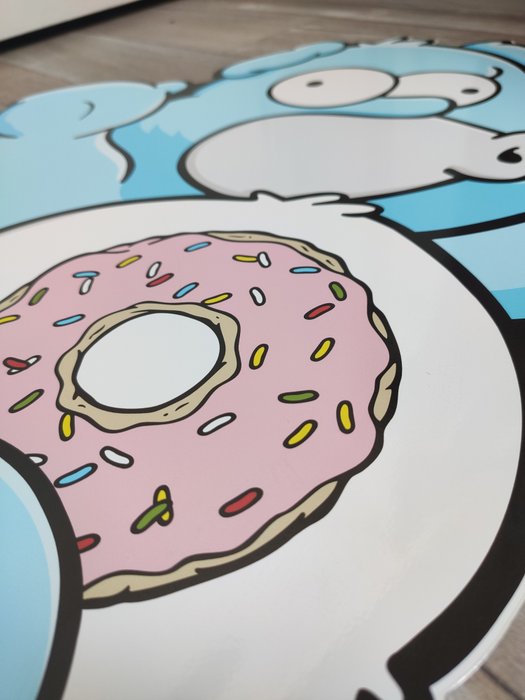 Wandwerk getiteld donut bear blue Edition van Mr LIKEY, gedrukt op een 3mm aluminium plaat.