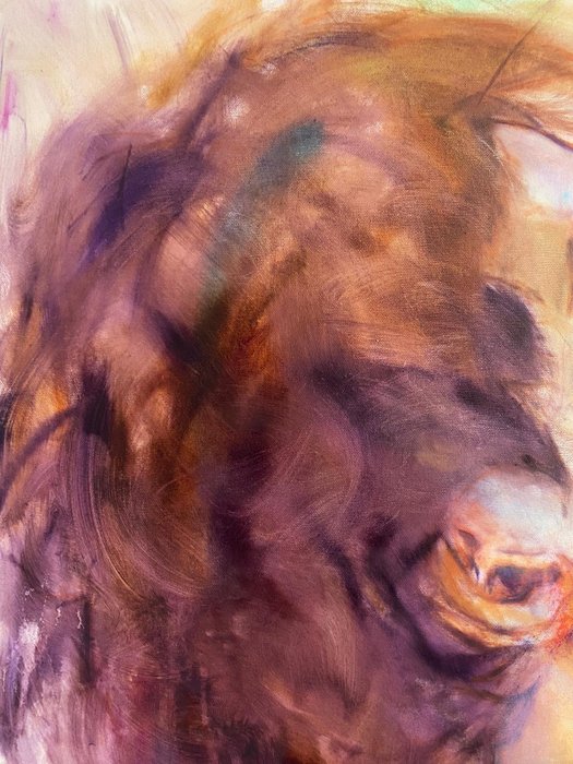 Dit werk illustreert een moment van volheid en kracht dat herinnert aan de levensvisie van de kunstenaar.