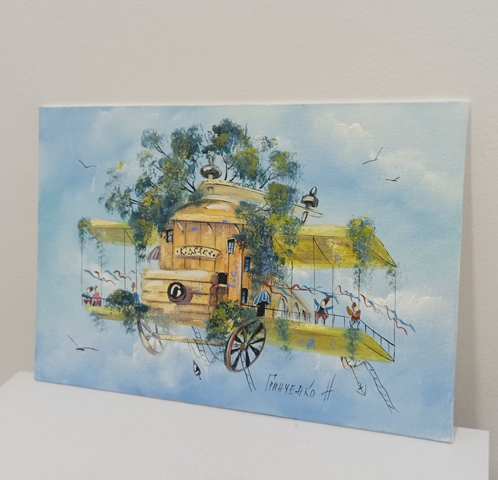Originele auteurs fantasie olieverfschilderij op natuurlijk canvas op paneel.