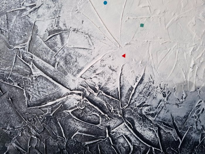 De kunst gemaakt met structurele pasta en acrylverf. Het vernist, wat het schilderij een glanzend effect geeft. Handgesigneerd, klaar om op te hangen.