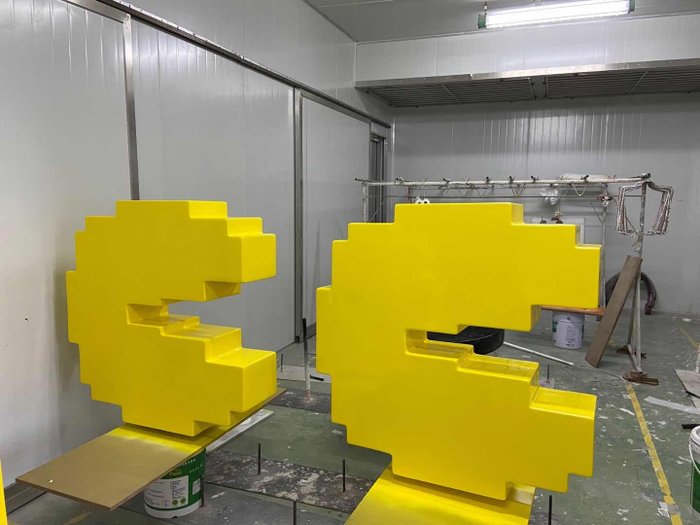 Pacman Pixel sculptuur gemaakt van glasvezel. Afmetingen 1m x 1m x 0,25m. Gewicht ongeveer 25 kg. Serie geproduceerd in onze ateliers, gelimiteerd tot 8 exemplaren en geleverd met een certificaat van echtheid. Sculptuur wordt beschermd geleverd in een verpakking die geschikt is voor elk type transport.