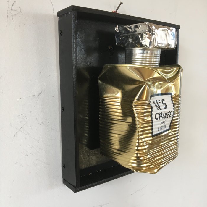 Titel: « Chanel N.5 Goud ingeslagen op een muur »