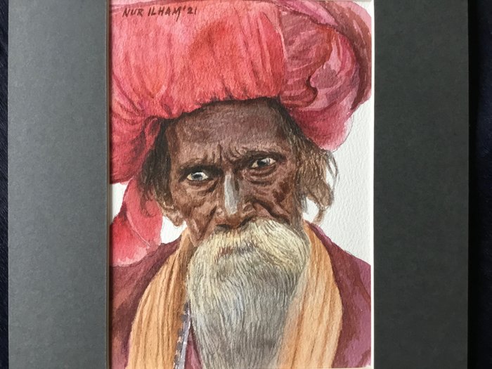 De schilderijen van Nur Ilham zijn zeer innovatief en van zeer hoge kwaliteit. Zijn schilderijen onderscheiden zich door zijn detaillistische schildertechniek waardoor zijn schilderijen en aquarellen zeer realistisch zijn en de uitstraling hebben van een foto. Hij heeft zich gespecialiseerd in het schilderen van vogelsoorten en portretten waaronder de collectie “People of te forest”,“Owls” “Birds of prey” en “Geisha”. De collectie “People of the forest” omvat natuurvolken uit Afrika, het Amazone gebied en Papoea Nieuw Guinea.Zijn werk spreekt tot de verbeelding en zijn echte eyecatchers. Dit is een prachtige aquarel uit de nieuwe collectie People of India.