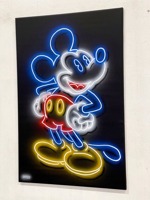 - Dit werk maakt deel uit van een super exclusieve collectie genaamd "Neons Lights", waar de kunstenaar tekenfilms en letters schildert die het visuele effect van neonlicht geven;