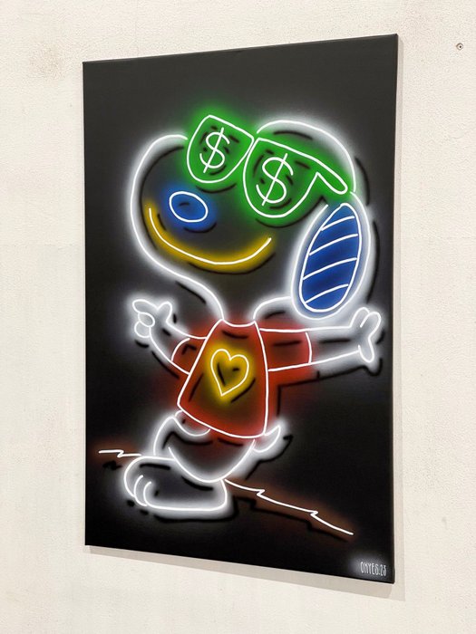 - Dit werk maakt deel uit van een super exclusieve collectie genaamd "Neons Lights", waar de kunstenaar tekenfilms en letters schildert die het visuele effect van neonlicht geven;