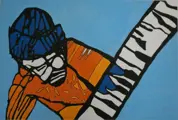 Op groot doek: 'STYLISTIC PIANO MAN" in mooie kleuren