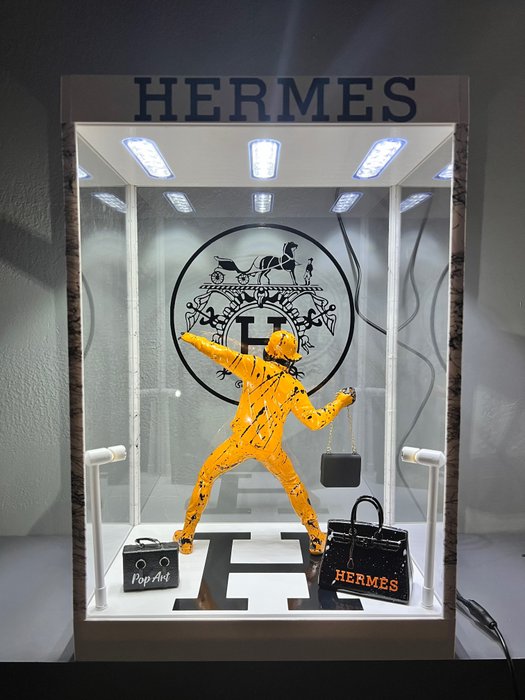 Nieuwe prestatie van ORIMA Pop Art, prachtig BANKSY-beeld in zijn led-venster vs "Hermès Paris"
