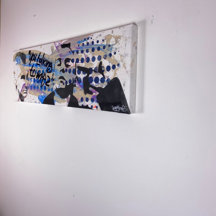 Medium: acryl, spuitverf op hoogwaardig galerijdoek (brancard niet inbegrepen)