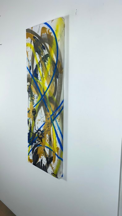Medium: acryl, spuitverf op hoogwaardig galerijdoek (brancard niet inbegrepen)