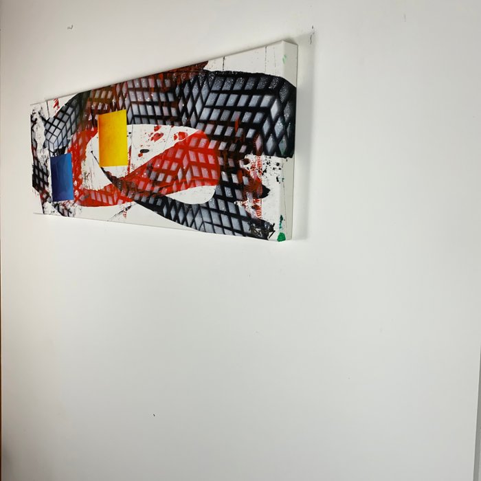 Medium: acryl, spuitverf op hoogwaardig galerijdoek (brancard niet inbegrepen)