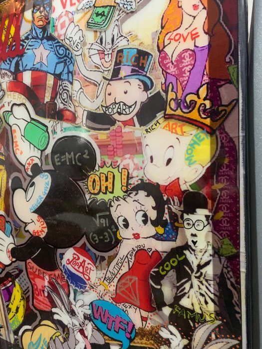 Collage coude on canvas, image created digital , acrilyc, Posca, and decorated by hand.