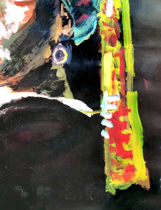 Een hedendaagse, pop-art achtige, remake van het wereldberoemde doek van Johannes Vermeer, gemaakt door Peter Klashorst.