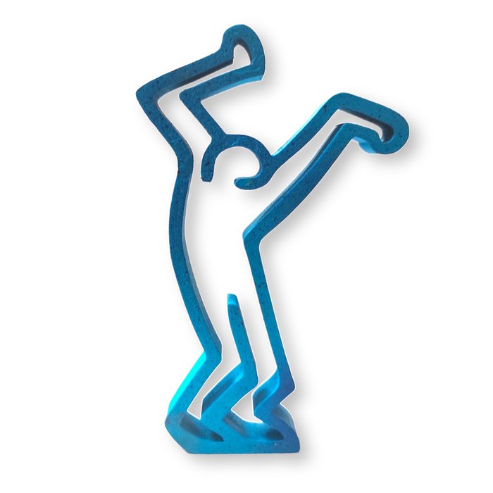 Zoals in al zijn werken speelt de kunstenaar met pop-imaginaire figuren met opvallende kleuren en nieuwe technieken, in dit geval brengt hij een hommage aan Keith Haring met plastic en spuitverf als drager. Behoort tot een serie sculpturen, dit kavel bevat 3 figuren van variabele grootte zoals afgebeeld op de afbeelding.