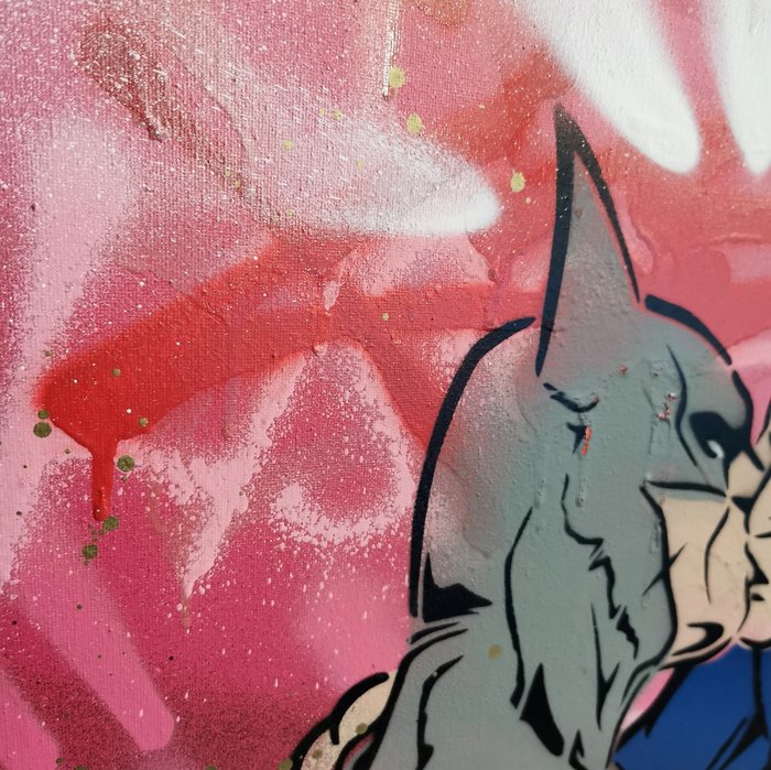 Origineel spuitverfkunstwerk op canvas door PNSHR. Handgesigneerd in de rechterhoek van de voorkant.
