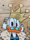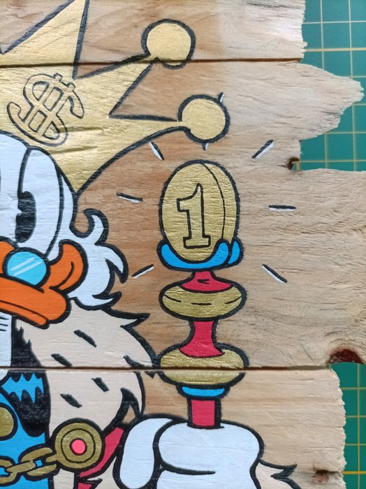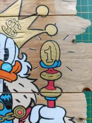 PSiKO - Scrooge King-dollar. Tekening op pallethouten paneel, 25x20cm. Uniek origineel werk gemaakt met acryl markers. Gesigneerd, gedateerd 2023 hieronder met de hand door de kunstenaar, idem op de achterkant en getiteld. Glanzende vernisafwerking. Kan aan de achterkant van het werk geplaatst of opgehangen worden aan het koord (klaar om tentoongesteld te worden).