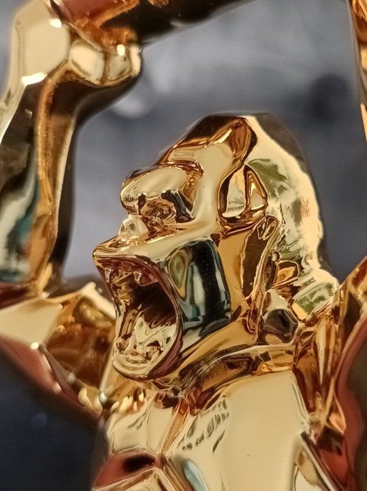 Richard Orlinski - Kong Oil Barrel Spirit Gold-editie. Hars sculptuur geschilderd in verchroomd goud. 18x5x11cm.