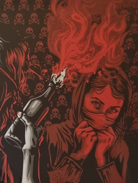 5-kleuren zeefdruk met de hand gemaakt in de werkplaats van Inencadrable.