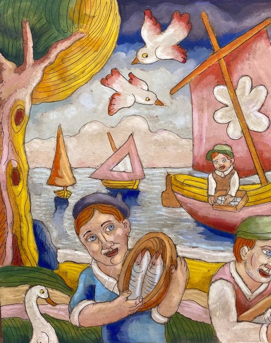 Olieverf op gegraveerd karton