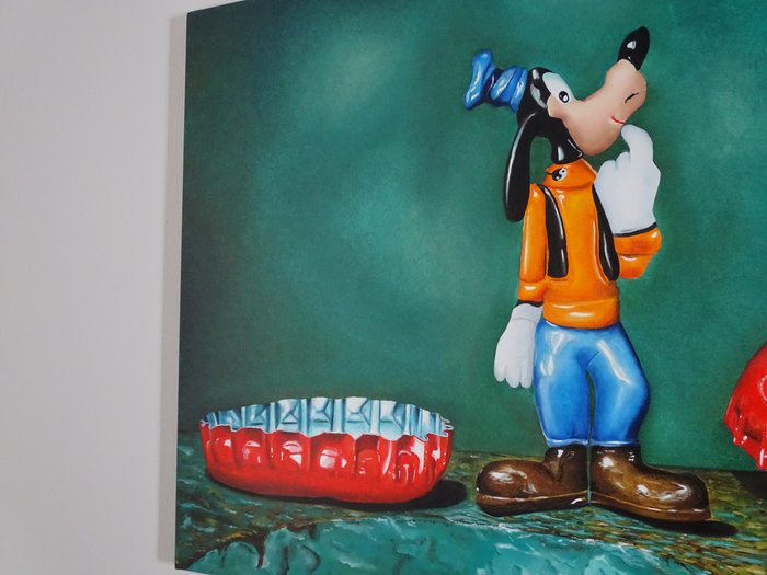 Uniek werk olieverfschilderij op canvas. Zeer goede staat. Handgesigneerd door de kunstenaar. Hoogwaardige olieverf met UV-eindglansbescherming. Geschilderde rand klaar om weer te geven. De kunstenaar schilderde de onzekerheid tussen liefde en leven, de eeuwige besluiteloosheid om al dan niet te zijn in een ironische en iconische sleutel met een Disney-stripfiguur geflankeerd door het iconische merk CocaCola als onderwerp. De kunstenaar begon zijn eerste picturale stappen in het gezin met zijn vader en oom, Walter Alberghini, de laatste erkend voor zijn werk, zowel in Italië als in het buitenland. Volledig autodidact, heeft de kunstenaar onlangs zijn picturale techniek willen perfectioneren door samen te werken met schilders van het hyperrealistische genre. Hij exposeert voor het eerst voor I Pittori Pievesi in het collectief jaarboek in september 2021-2022.