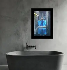 Het doek is aangebracht op een zwart bord dat de steun en het frame van het schilderij is.