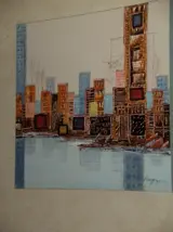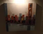 SCHILDERIJ ABSTRACT STADSBEELD BEIGE, 70x70 cm Nieuw