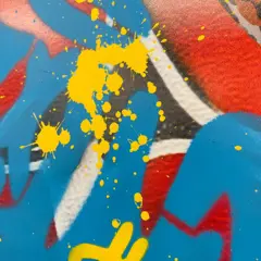 Opmerking: al zijn steunen hebben hobbels, soms zelfs perforaties, scheuren op plaatsen of brandwonden, wat de schoonheid van zijn kunst maakt en elk stuk uniek maakt. Houd er rekening mee dat alle onderdelen van karton zijn en enigszins kunnen verschillen in uiterlijk. Bijvoorbeeld deuken en krassen op de randen. Bovendien zullen druppels en verfspuiten variëren in de hele collectie.