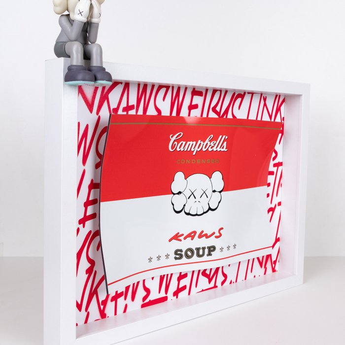 - Beschrijving: Rechtstreeks vanuit de studio Sculpture-eerbetoon aan Warhols beroemde Campbell's Soup en het Kaws-universum waar de kunstenaar SKE vooral dol op is.