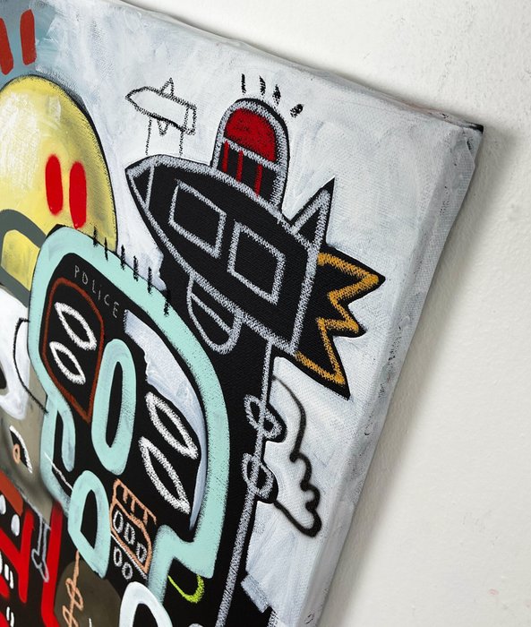 - Origineel werk op linnen doek en houten lijst met sleutel
