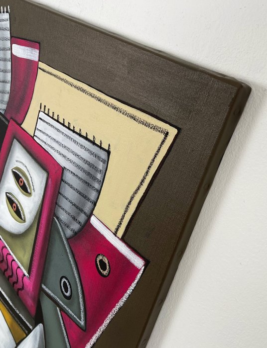 - Origineel werk op linnen doek en houten lijst met sleutel