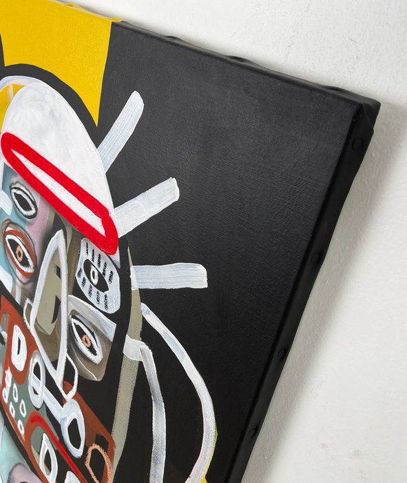 - Origineel werk op linnen doek en houten lijst met sleutel
