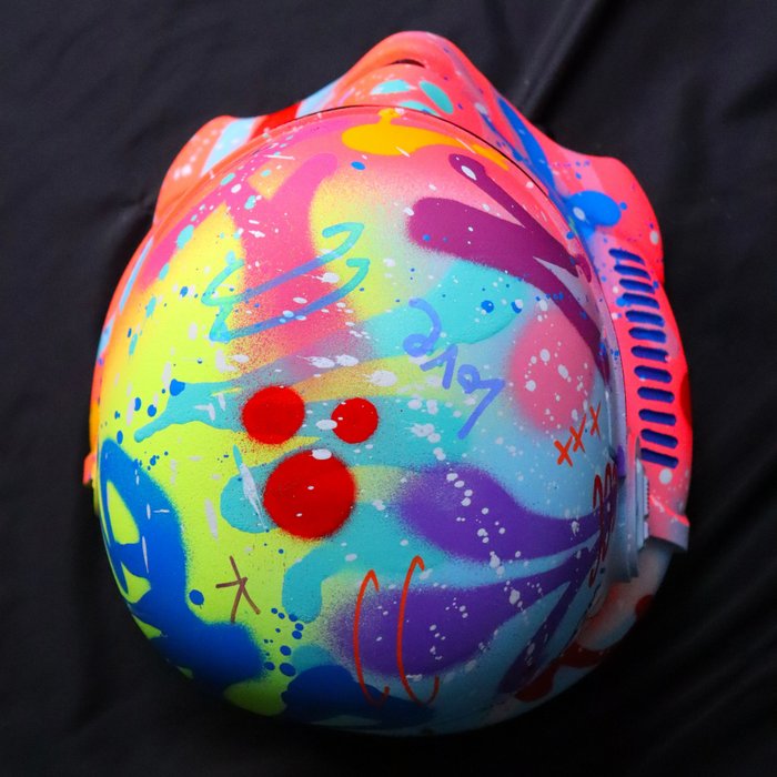 Spray verf, acryl en posca op hars sculptuur.