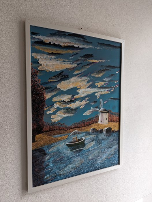 Werk gemaakt op hout met de acryltechniek. Het werk is gemaakt om van kleur te veranderen op basis van de richting van het licht en de hoek van waaruit je ernaar kijkt. Handtekening op de achterkant. Jaar 2022.