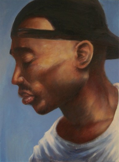 Tupac '2Pac' Shakur, 54 cm x 73 cm, handgeschilderd, olieverf op canvas, zonder lijst, zijkanten niet meegeverfd.