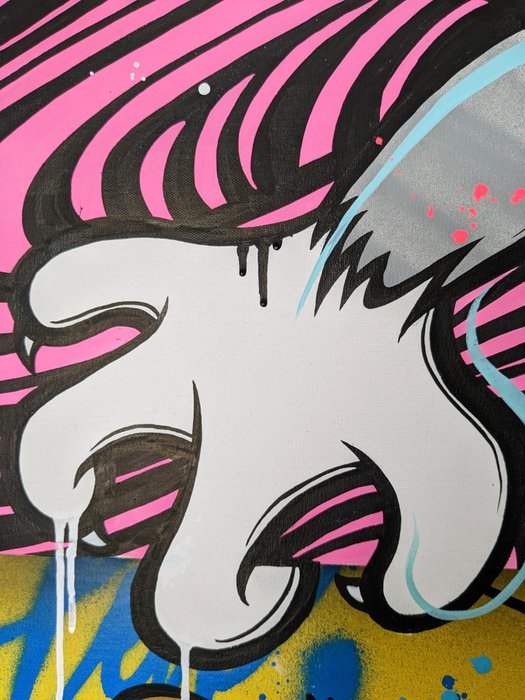 Unik gebruikt acryl- en spuitverf voor haar werken, dus er kunnen vlekken en scheuren op haar werken verschijnen. Dit is normaal bij spuiten.