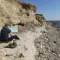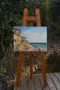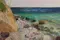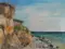 Deze foto is in april genomen aan de Deense Oostzeekust op het eiland Aeroe. De blauwe lucht is bezaaid met witte sluierwolken. De zee gloeit blauw Turkoois Het heldere strand, bezaaid met stenen van verschillende groottes, loopt onder een hoge klif. Fris groen groeit op de zanderige kliffen. De olieverf is pasteitje aangebracht met kwasten. De structuren van de kliffen, het water, de stenen en de vegetatie zijn plastisch gestructureerd. Het doek is met de hand bedekt en multi-geprimed. De randen zijn wit. De beeldophanging bestaat uit een staalkabel. Er wordt een certificaat van echtheid verzonden.