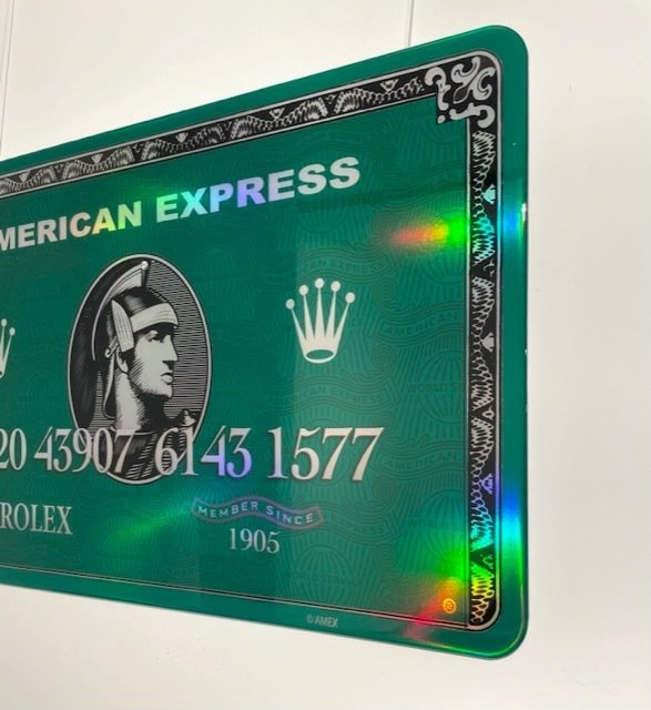 Exclusive artwork from International artist Van Apple. The Amex is made from aluminium, Hologram and Epoxy. The combination of materials and design is unique and amazing in real life.