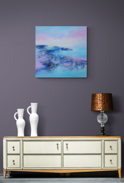 Dit schilderij heeft veel structuren en lagen. Het structuuraspect en de metallic kleuren komen tot leven met gerichte verlichting en creëren prachtige schaduwen en glans die het kunstwerk een eigen leven geven en gedurende de dag veranderen in wisselende lichtsituaties.