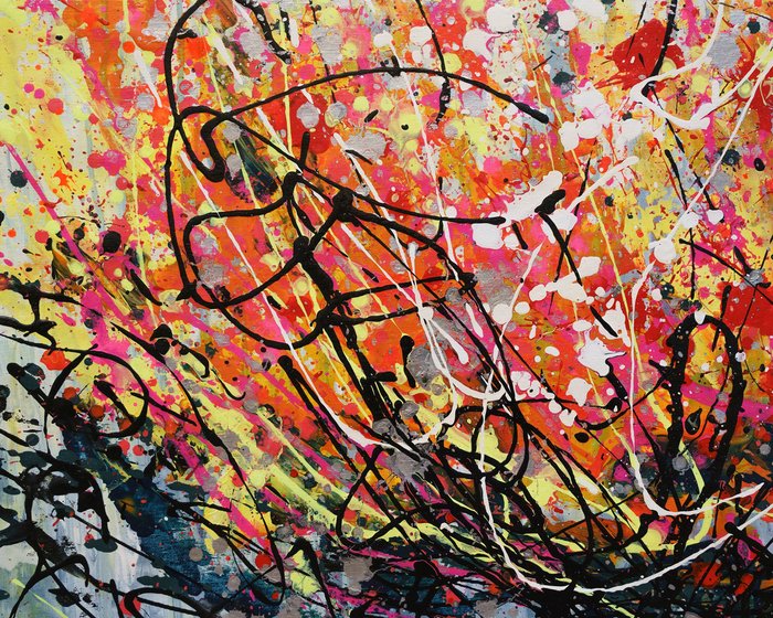 Origineel schilderij, acrylverf op canvas, zilveren tinten, XXL-formaat. (Des.125x102)