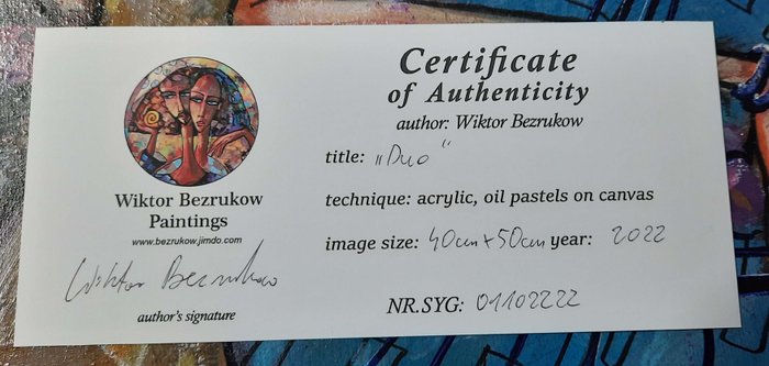 Bovendien is het schilderij op de achterkant ondertekend door een auteur - de titel, een handtekening, een jaartal en het nummer van de handtekening dat overeenkomt met het nummer op het certificaat.