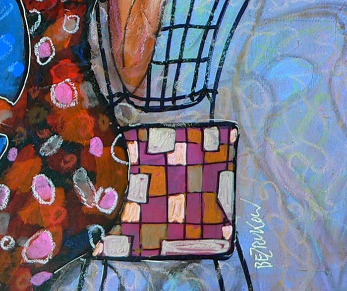 Acryl/oliepastels schilderij op canvas, opgespannen op een professioneel schildersweefgetouw.