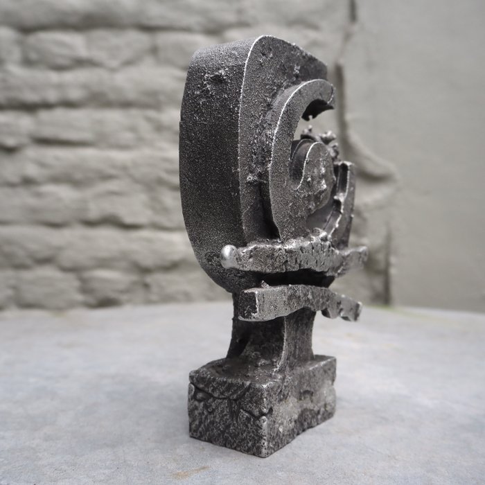 Aluminium sculptuur (ca. 18 cm x 13.5 x 4 cm) van de Belgische beeldhouwer, juwelier en goudsmid Willy Ceysens (1929-2007) uit de jaren 60-70. Ceysens maakte voornamelijk kleinere beeldjes, maar ook interieurobjecten zoals koffietafels, asbaken en kandelaars. Hij werkte hoofdzakelijk in aluminium dat hij in zand afgoot en ruw en ongepolijst liet. Het plaatst hem binnen de stroming van het brutalisme.