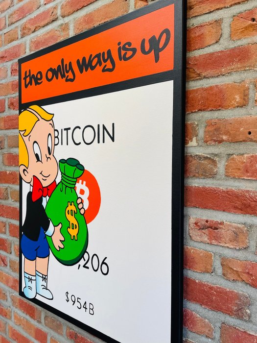 Titel Schilderij: Richie Rich Monopoly bitcoin card