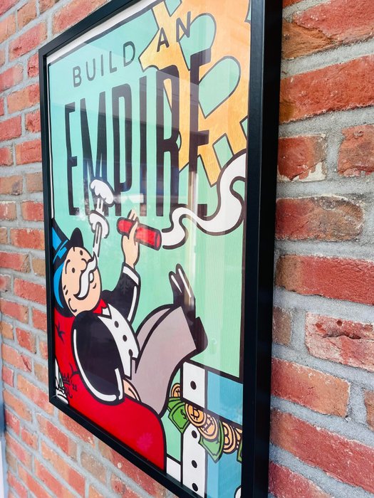 het schilderij is gemaakt met acrylverf, acrylmarkers, bladgoud en fake dollar biljetten.