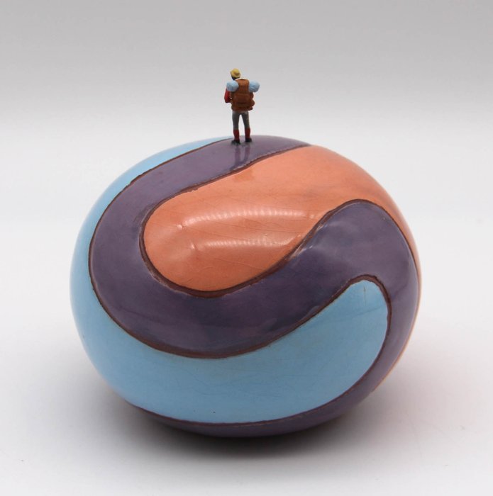 Beeldje van keramiek en hars.
