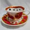 Maat: Cup/ 215cc, diameter ca. 10cm, hoogte ca. 6,5 cm, schotel/diameter ca. 15cm, taartbord/ca. 18cm