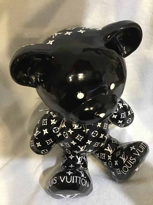 Hars teddybeer met zijn kraag met studs. Aangepaste Louis Vuitton. Glans gelakte vernis. Beperkte serie. Handgesigneerd.