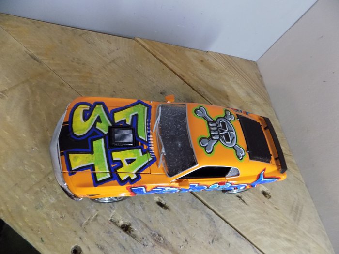 Het schilderen is gedaan op een Ford Mustang Mach 1, schaal 1/18 (in metaal).